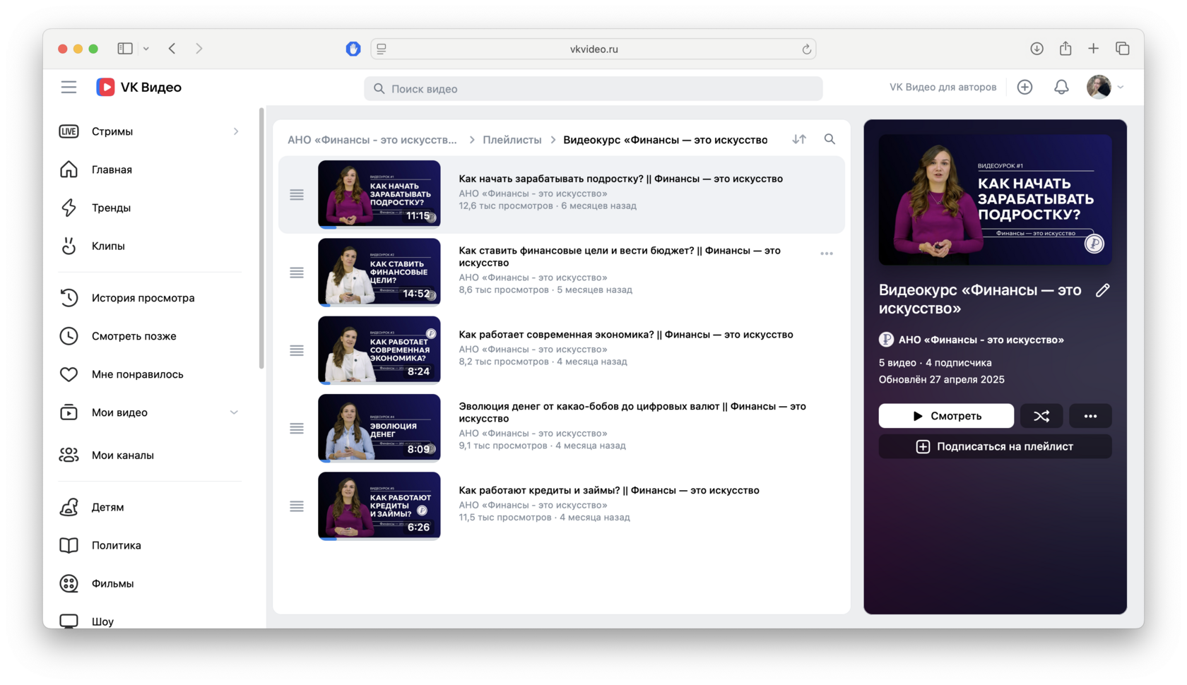 А если вы еще не смотрели сам курс — все видеоролики находятся в свободном доступе на VK Видео в сообществе АНО «Финансы — это искусство».